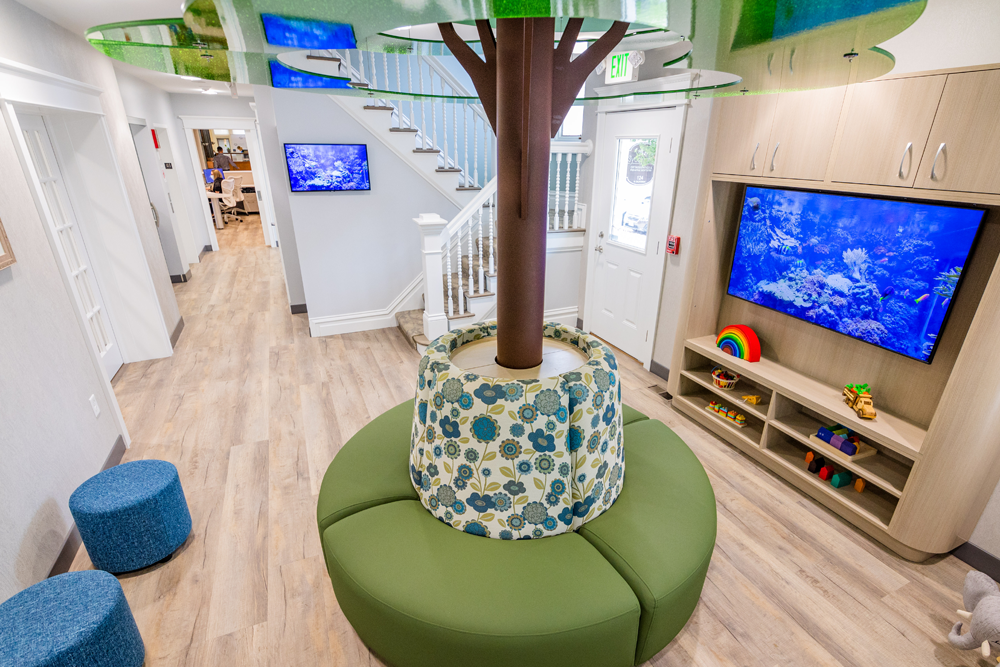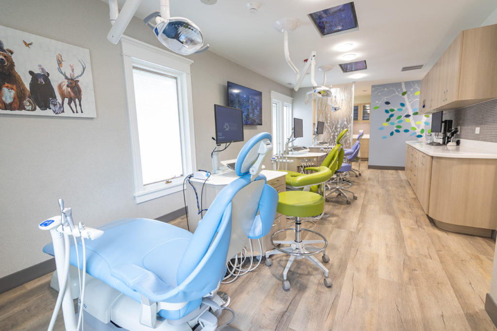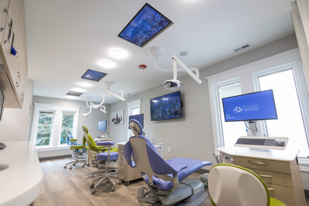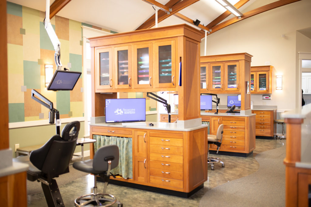 Sycamore Orthodontics & Pediatric Dentistry in Sycamore, IL offers fantastic amenities for patients and parents, including a refreshments bar, a video game room with Xbox and Playstations, a toothbrushing station, large open hygiene bay with a bright and fun atmosphere.